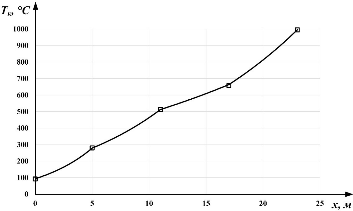 Решая систему уравнений (1) относительно Tкi(xi) и Tвi(xi) с учетом граничных условий, получим семейство функциональных зависимостей, отражающих пространственное распределение по координатам xi температур кирпича и охлаждающего воздуха на каждом участке зоны охлаждения туннельной печи: