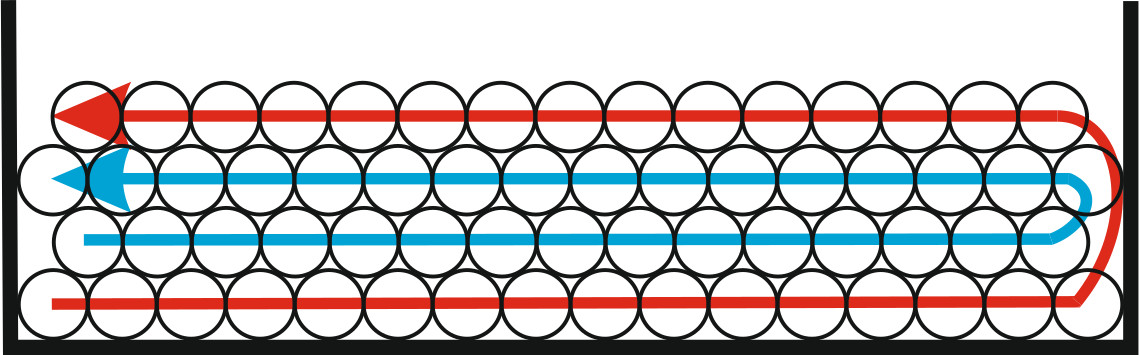 Для определения функции представим графически, как выглядит распределение температуры при радиальном перепаде по длине волокна при квадрупольной намотке. Поскольку мы рассматриваем радиальные температурные градиенты, температура на участке волокна, принадлежащего одному слою, будет близка к постоянной в силу существенно большей площади теплового контакта в радиальном направлении по сравнению с вертикальным. Тогда распределение температур вдоль нити волокна схематично будет выглядеть, как показано на рис. 5.
