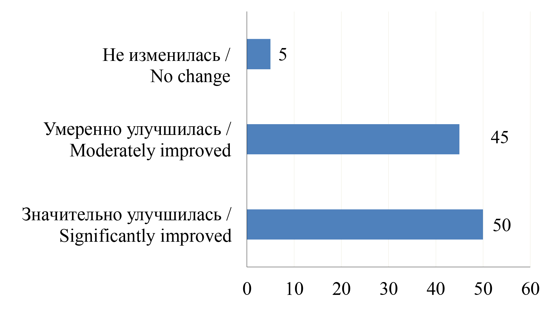Благодаря идентификации (саморефлексии) участниками программы было достигнуто осознание своих возможностей и их границ, более четкое понимание притязаний на свою личностную траекторию саморазвития, будущую профессию, увеличение мотивации к развитию чувства личности и гражданской идентичности, что подтверждается результатами анкетирования (рис. 1). Все участники были проинформированны о цели исследования и выразили готовность к сотрудничеству.