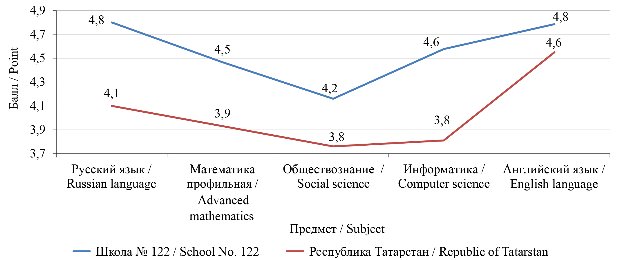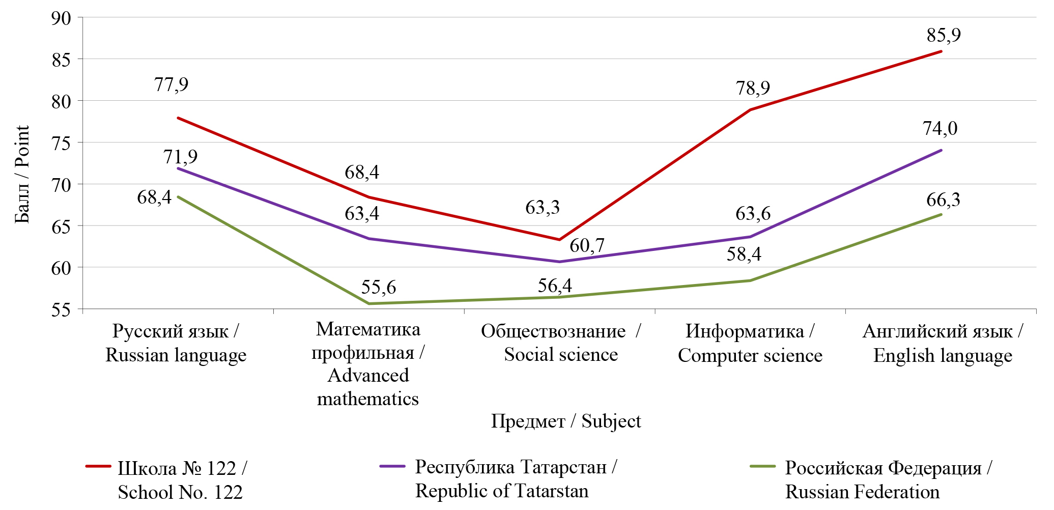 - Результаты школы по ОГЭ и ЕГЭ выше средних по населенному пункту/региону/стране.