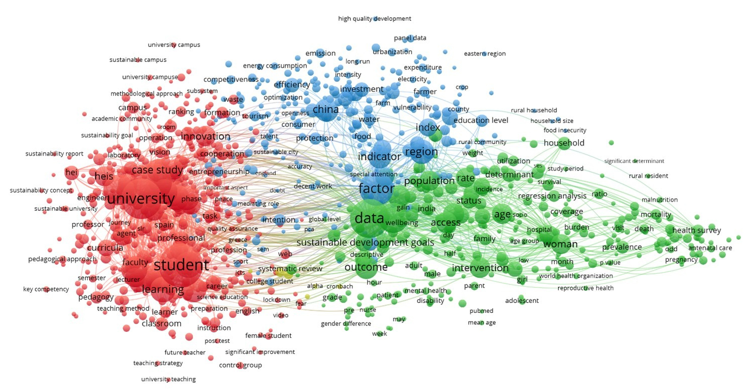 China | Social Sciences (178); Educational Research (168); Business Economics (103); Environmental Sciences and Ecology (90); Engineering (59). | SDG 9: Industry, Innovation, and Infrastructure (71); SDG 13: Climate Action (54); SDG 4: Quality Education (45); SDG 3: Good Health and Well-Being (38); SDG 11: Sustainable Cities and Communities (37). |