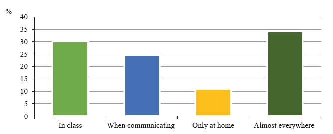The question “How often do you use the style of online literature?” and “Where do you mainly use it?” allows us to see how much literary value has been preserved. The quality of online novels is a matter of controversy, since many online texts are illiterate, and their authors do not have editors or proofreaders [19]. The eclectic writing style and terminology is misleading for high school students’ written expression. The difference between network literature and traditional literature lies in its freedom. The entry barriers for online novels are extremely low at this stage, resulting in a mix of good and bad novels. The writing forms of many works do not correspond to the routine. Although the overly casual style of writing has a lively and avant-garde touch, it also loses its literary value. Some writers have limited skill or neglect to express common sentences in traditional literature. It’s best to split a sentence into several sentences to describe it, or write half a sentence and let readers get the rest of the meaning. Some authors, in order to emulate the long sentences of some famous writers, continue the sentence where it should be interrupted, and there is no punctuation mark in several lines, but readers believe that this is a new way of speaking [20; 21].