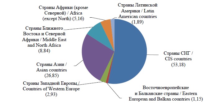 Fig. 1. Distribution of foreign students at Russian universities by country in 2019, %