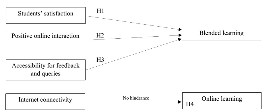 Based on the literature reviewed, it has been figured out that no study has investigated the relationship between students’ level of satisfaction with distance and blended learning. The following hypotheses have been formulated based on the empirical and theoretical evidence cited above: