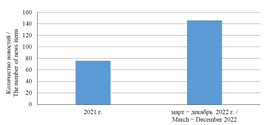 Также анализировались новости о международном сотрудничестве в сфере высшего образования, размещенные в рассматриваемый период на сайтах Президента РФ, Правительства РФ, Министерства науки и высшего образования РФ, Министерства иностранных дел РФ, Главного государственного экспертного центра оценки образования, Росмолодежи, Рособрнадзора, Россотрудничества, Фонда «Русский мир», а также на интернет-портале СНГ.