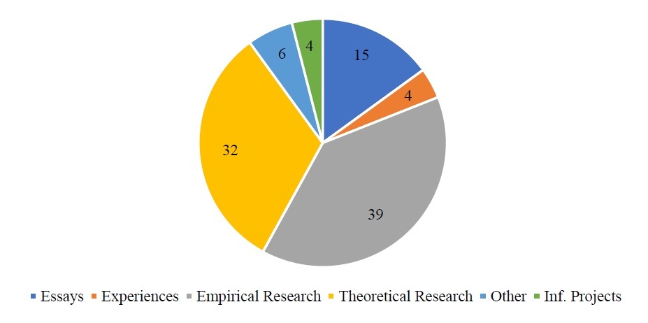 The articles that address the issue of education for persons with disabilities in Mexico tend to be mostly (56%) empirical research reports (Fig. 2). These articles are promoted by female researchers from Mexican public universities who position themselves in the paradigm of inclusive education to study phenomena linked to the development of more equitable conditions in schools and universities for persons with disabilities.