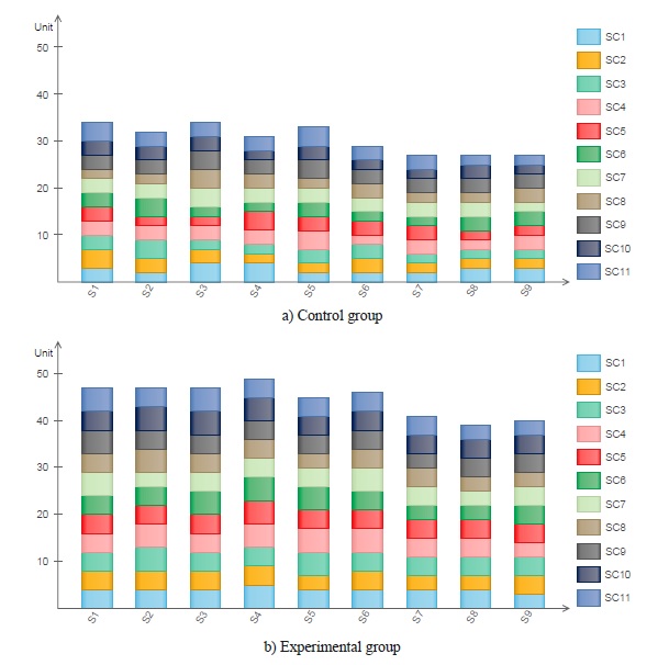 in the control group and experimental group, using the CBL tool (Sn: Student n for the study)