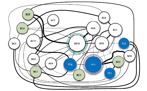 Consistent with these reflections, Figure 7 reveals seven competencies with significant bilateral correlations (related to five or more competencies). They are SC10, SC3, SC8, SC11, SC1, SC5, TC4.