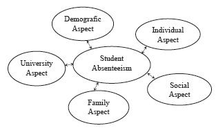 – Questionnaire Design. The data collection tool for the research was developed based on literature from scholars on the reasons that lead students to be absent from class. Figure 1, shows the aspects that have been analyzed in this study related to the factors that directly affect student absenteeism according to academics.