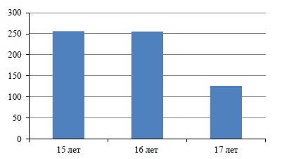 Исследование проводилось в международном детском центре «Артек» летом 2021 г. Респондентами выступили 640 подростков в возрасте 15–17 лет. Возрастное распределение выборки представлено на диаграмме (рис. 3).