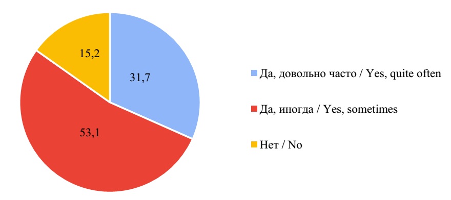 Fig. 5. Distribution of teachers’ answers to the question “Have there been cases in your practice when learners’ work mainly consisted of text copied from the Internet without any references?”, %?
