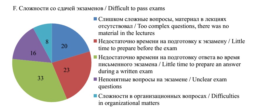 Данная детализация блока F позволила выявить недостаток времени на подготовку к экзаменам как основной фактор, затрудняющий обучение российских студентов в Германии (рис. 6).