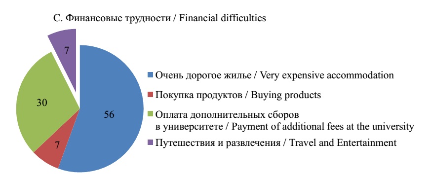 Остальные разделы анкеты выявили в качестве главной финансовой трудности (укрупненный раздел «С. Финансовые трудности») оплату жилья, что также тесно связано с вопросом обеспечения студентов общежитием (рис. 13).