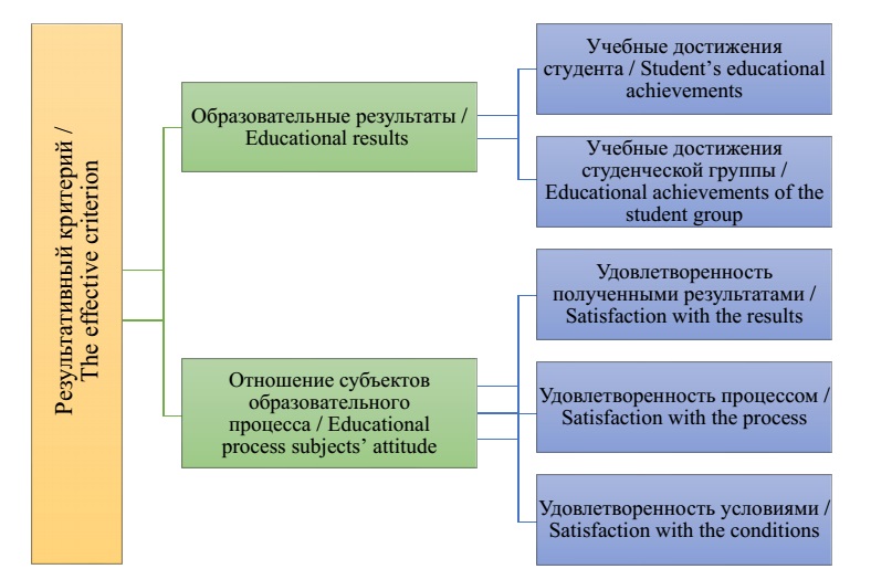 Fig. 1. The effective criterion indicators for assessing the blended learning technologies effectiveness