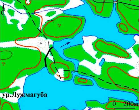 Рис. 5. Озеро Каменное. Местонахождение канала около деревни Лужмагуба.