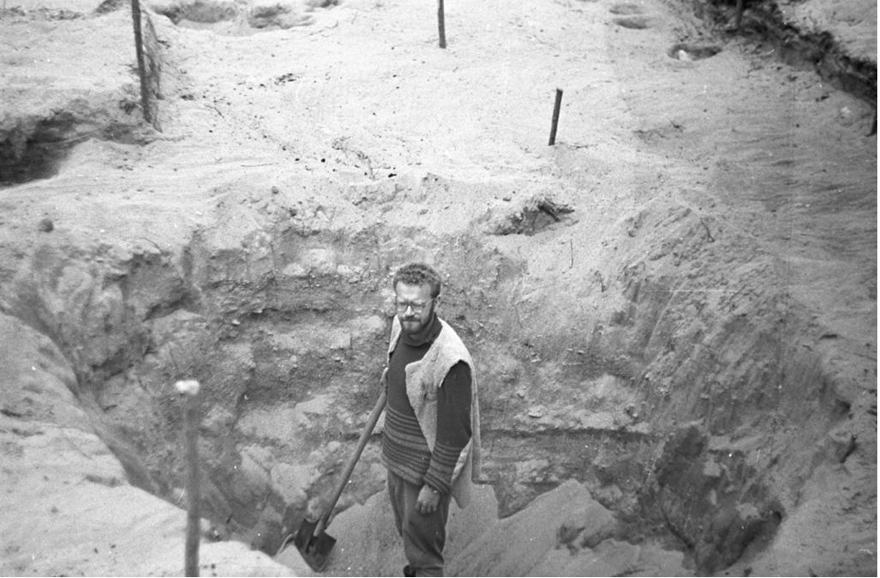 Figure 6. Hunting pit at the settlement Tunguda XXIV. The excavation process. 1990. Photo by M. Shakhnovich.