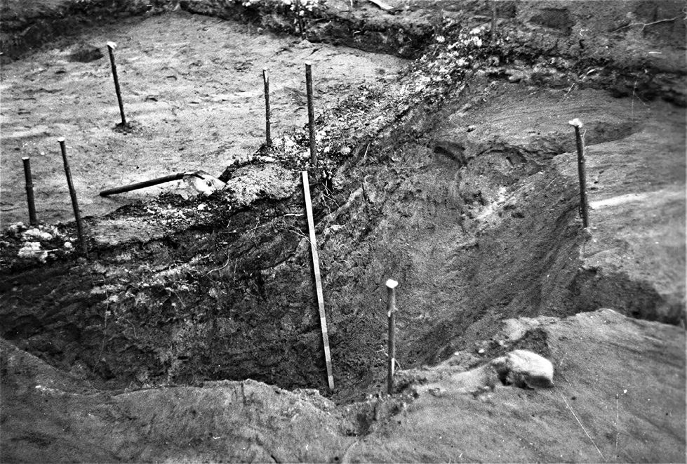 Figure 5. Excavated hunting pit at the settlement Tunguda XXV. 1990. Photo by A. Zhul’nikov.