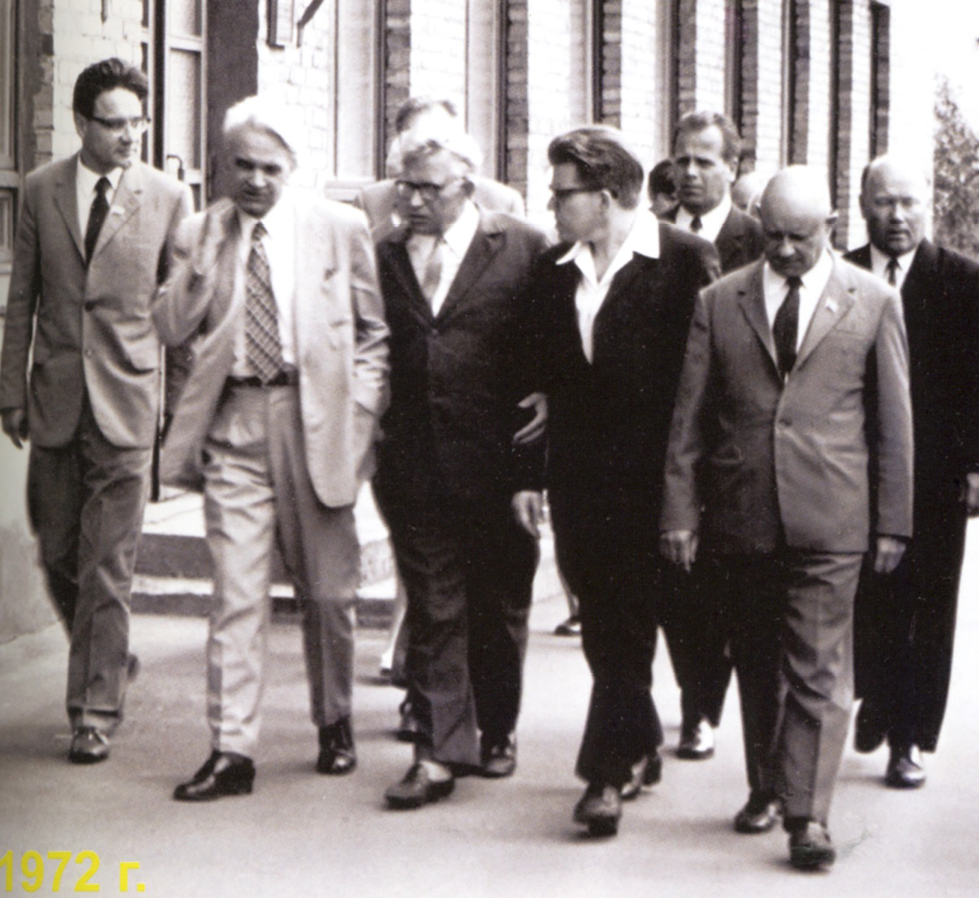 Обсуждение возможности создания Института физиологии в Коми филиале АН СССР с президентом АН СССР академиком М.В. Келдышем во время прогулки по г. Сыктывкару. Слева направо: секретарь Коми Обкома КПСС А.П. Кармановский, президент АН СССР академик М.В. Келдыш, Председатель Президиума Коми филиала АН СССР В.П. Подоплелов, заместитель Председателя Президиума Коми филиала АН СССР М.П. Рощевский, секретарь Коми Обкома КПСС А.А. Попов. Из кн.: Рощевский, М.П. Избранные труды. В 4-х т. / М.П. Рощевский. – Сыктывкар, 2013. – Т.II. (1 вклейка).