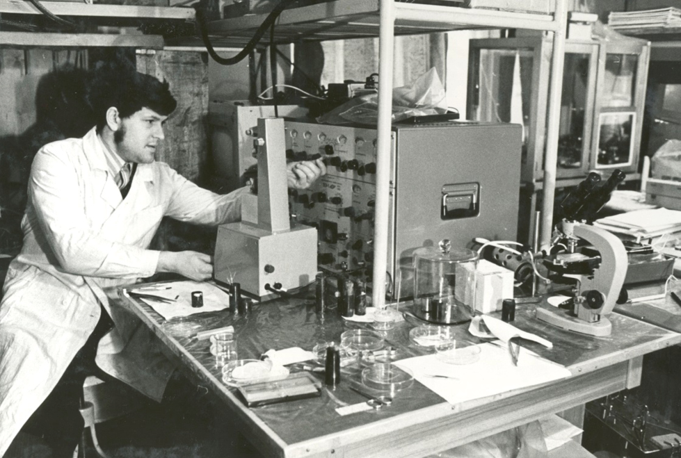 Photo 1. Vladimir Alexandrovich is caught up in work (1973). Archive materials of the Institute of Physiology FRC Komi SC UB RAS.
