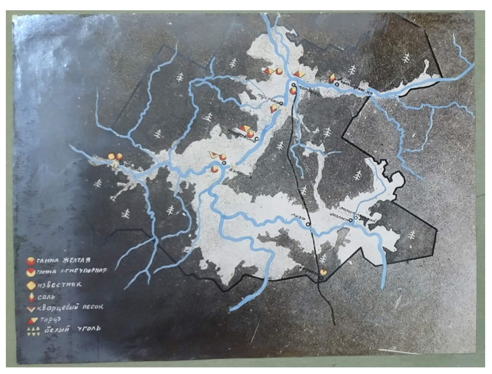 Note: Yellow clay, refractory clay, limestone, salt, quartz sand, peat, white coal are marked on the map chart.