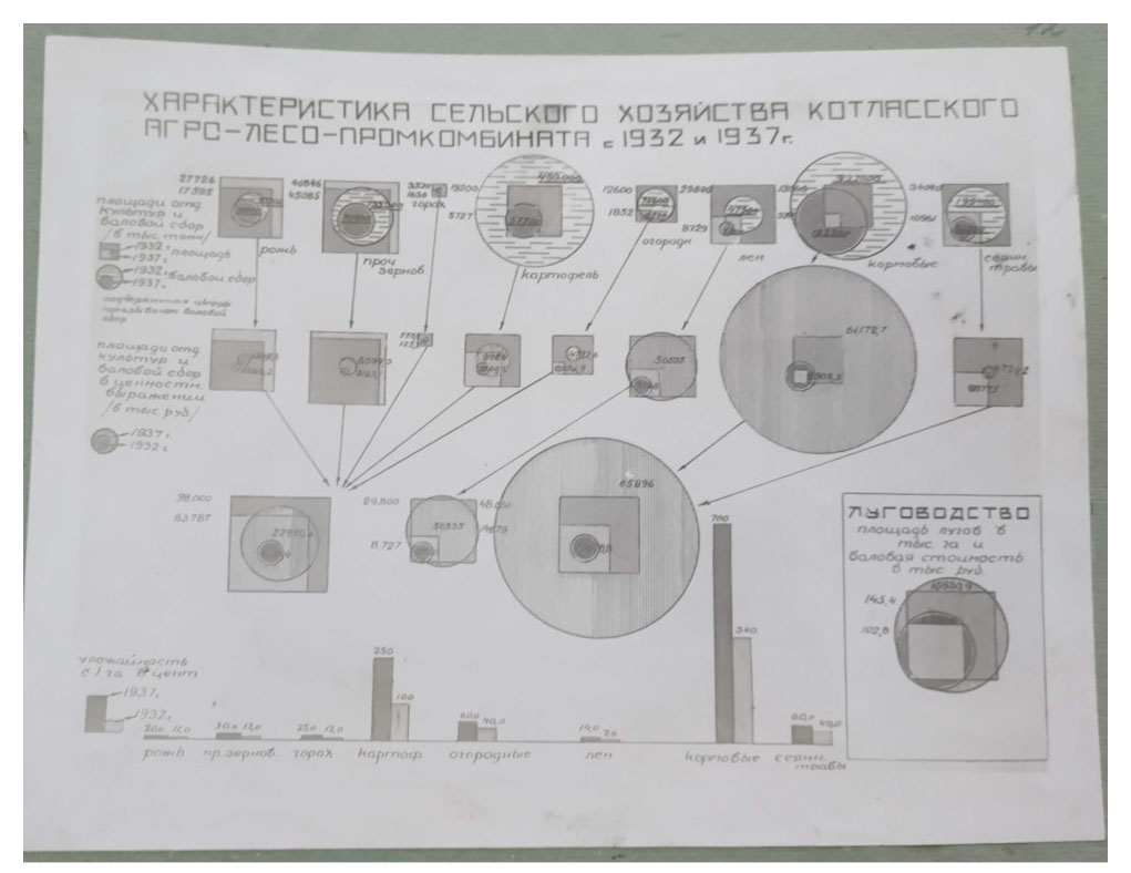 Photo 11. Characteristics of agriculture of the Kotlas combine in 1932 and 1937
