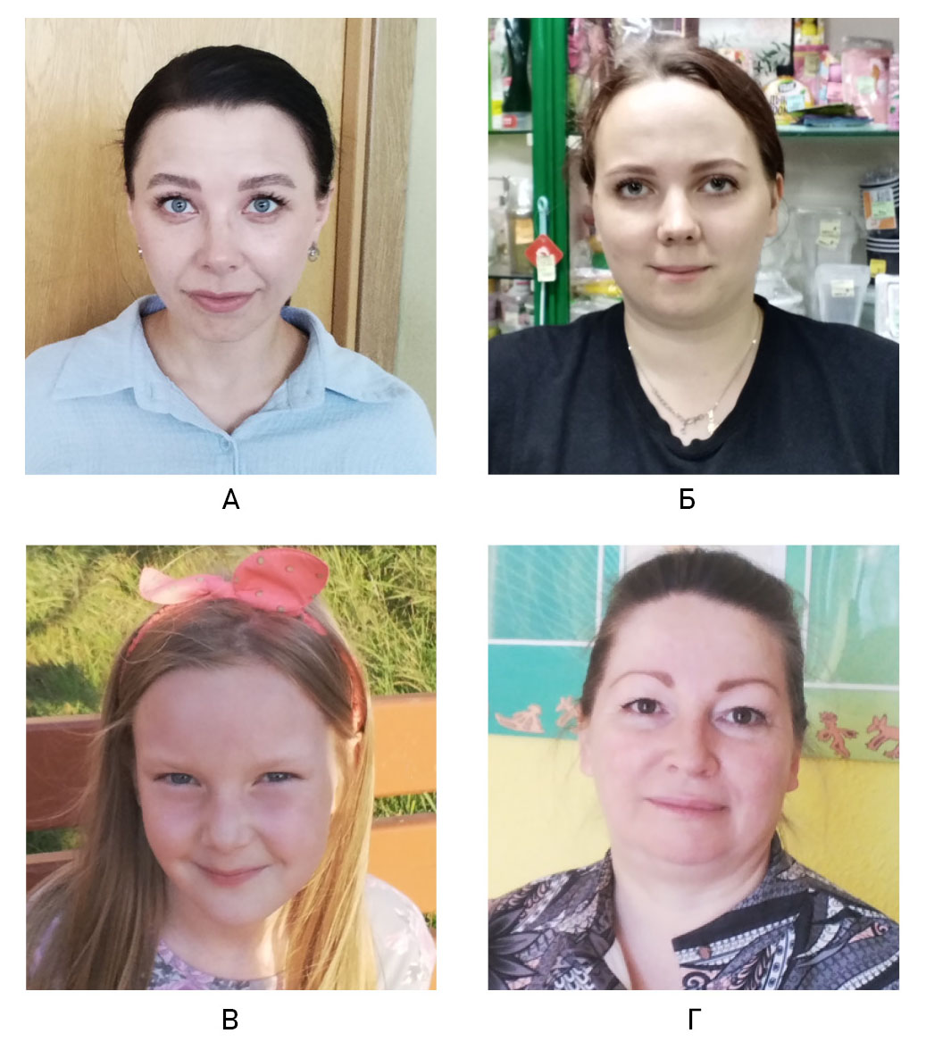 Рис. 6. Саамы-метисы: А – украинка-саамка; Б – русская-саамка; В, Г – коми-саамка