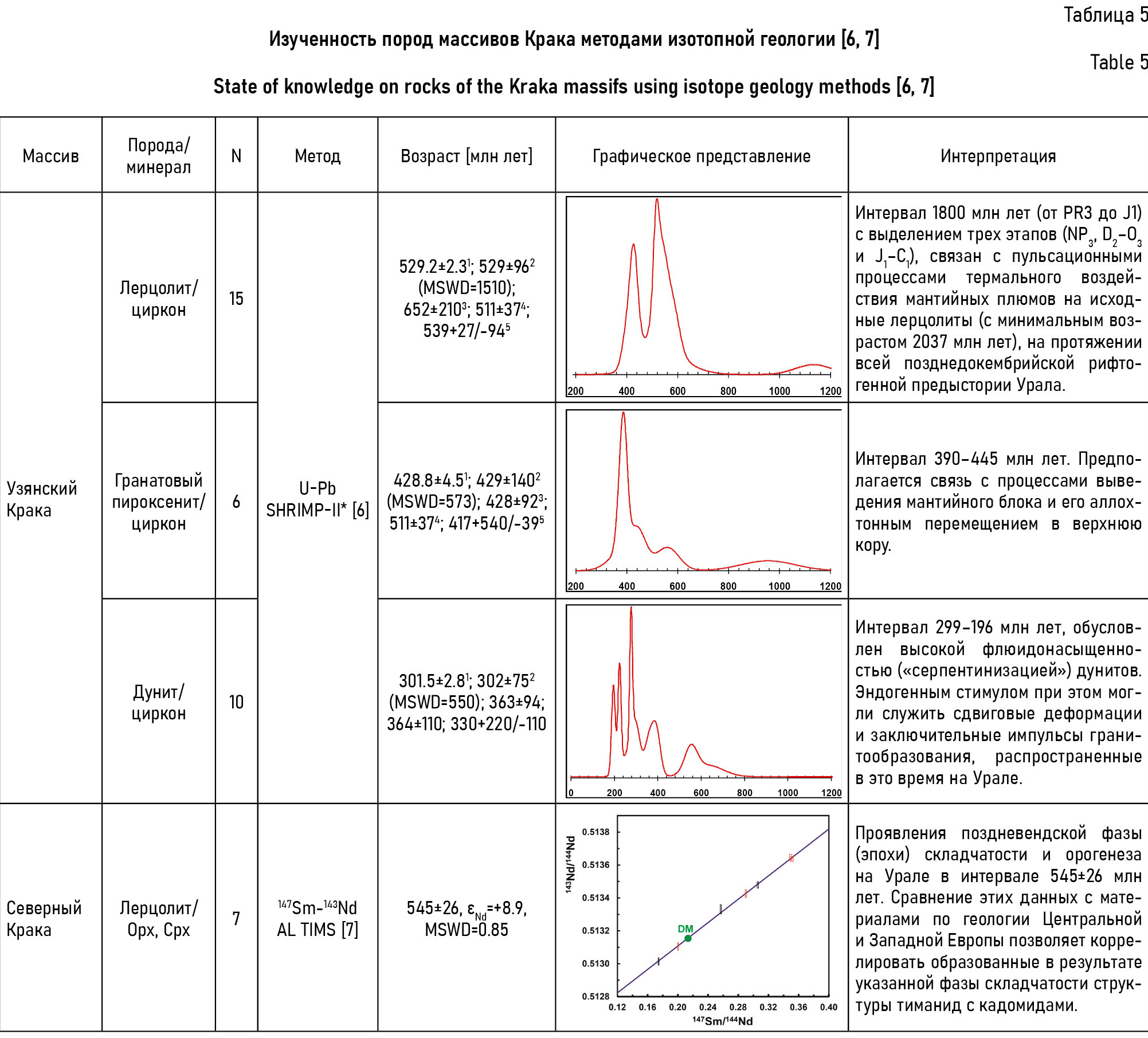 Table 5. State of knowledge on rocks of the Kraka massifs using isotope geology methods [6, 7]