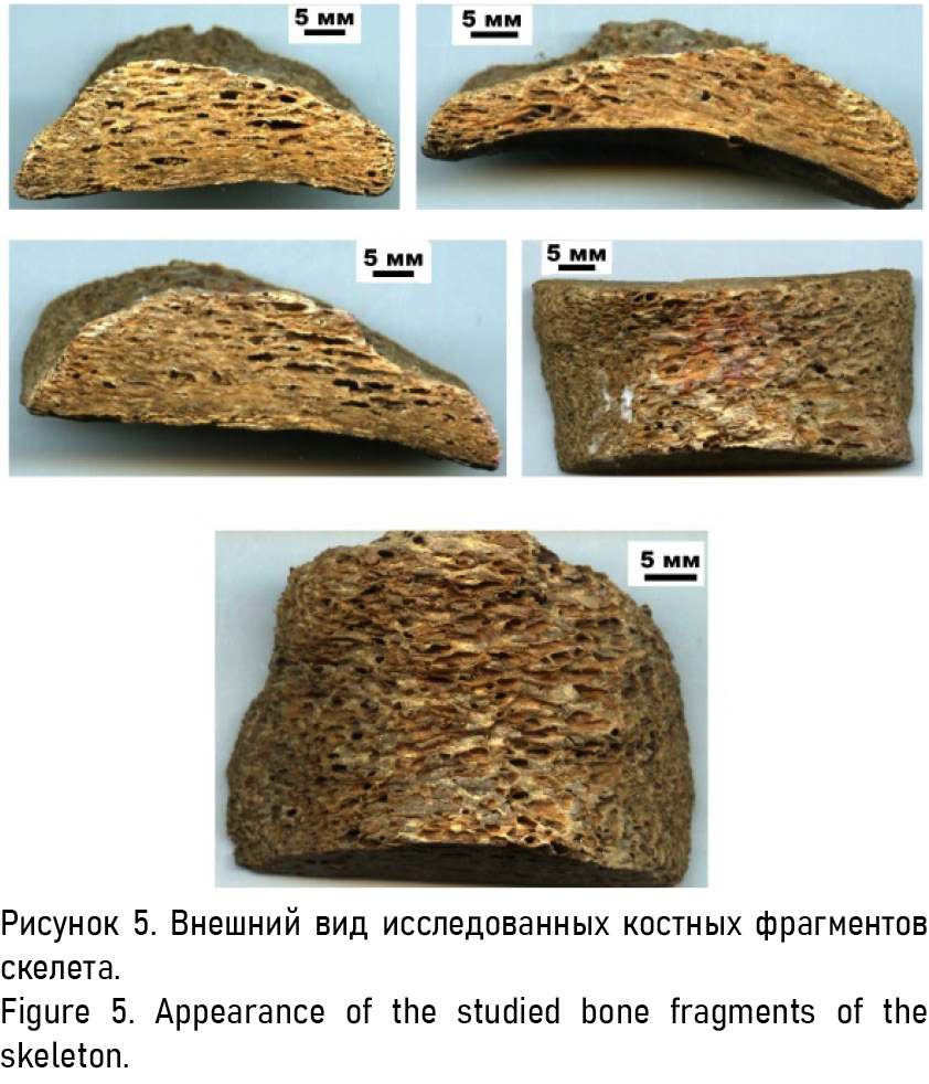 Рисунок 5. Внешний вид исследованных костных фрагментов скелета