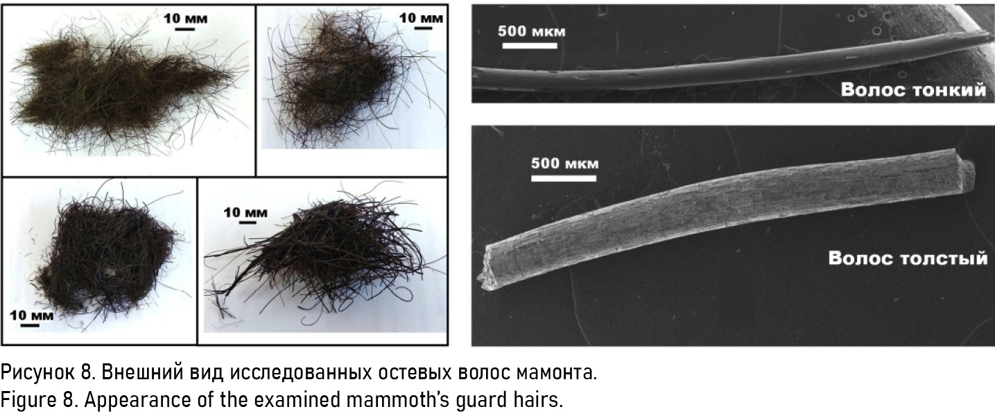 Обсуждаются впервые полученные результаты комплексных минералогических, спектроскопических, хроматографических, изотопно-геохимических исследований новых остатков таймырского мамонта, включающих кости, костный коллаген, волосы, кожу и мягкие – мышечные и жировые – ткани. Сделаны выводы о биологическом возрасте, палеоклиматических условиях существования, пищевом рационе животного и о формах и степени фоссилизации его ископаемых остатков.