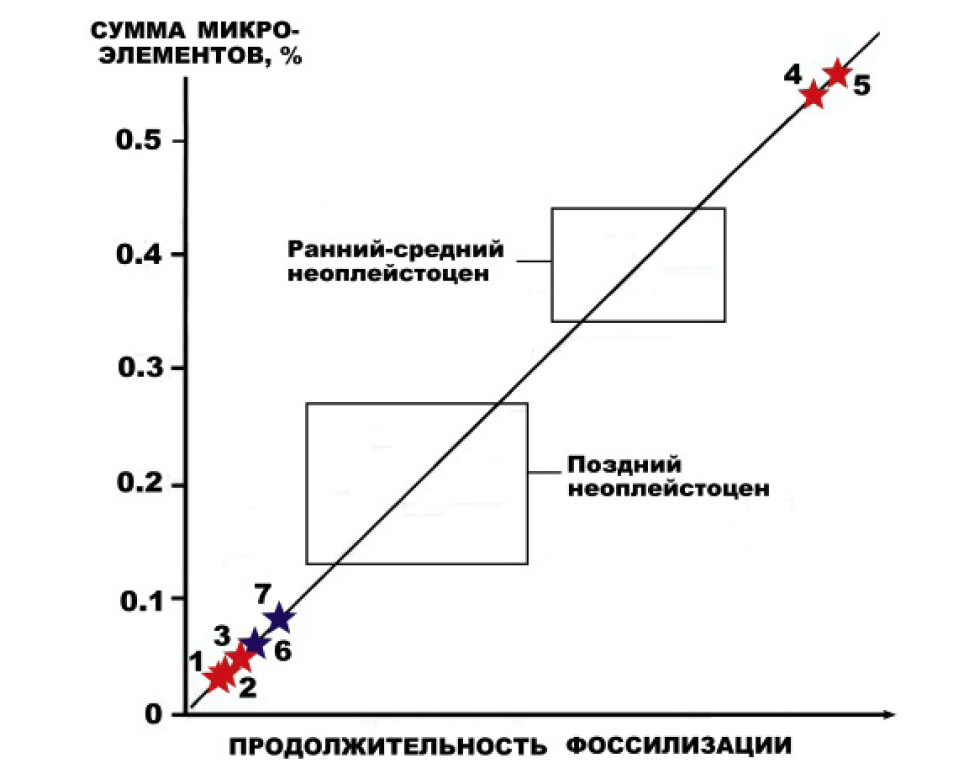 Для сравнения использовались данные, полученные ранее в процессе исследований костных остатков мамонта Шнейдера2.