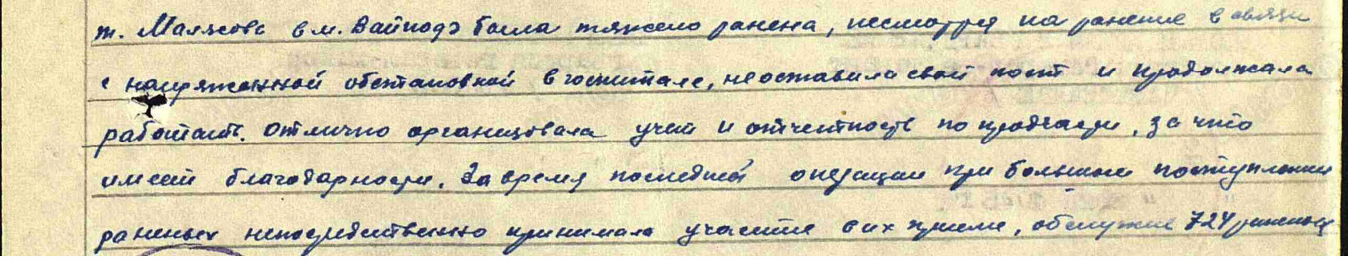 Archive document part with description of the heroic deed of E. S. Malyasova [3]