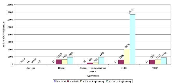 Рисунок 2. Агрохимические свойства удобрений, в мг/кг к абсолютно сухой массе.