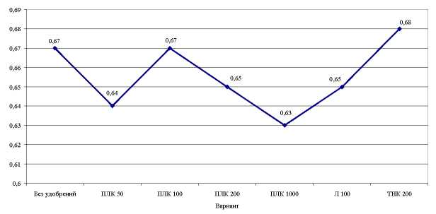 Изменение доз ПЛК привело к колебанию кормовых единиц в 1 кг сена то в сторону снижения, то в сторону увеличения (рис. 14).