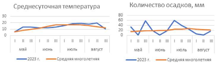 Рисунок 1. Динамика погодных условий вегетационного периода 2023 года.