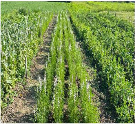 Фото 1. Люпин узколистный сорта Ладный на учебно-опытном поле Вологодской ГМХА в 2023 году.