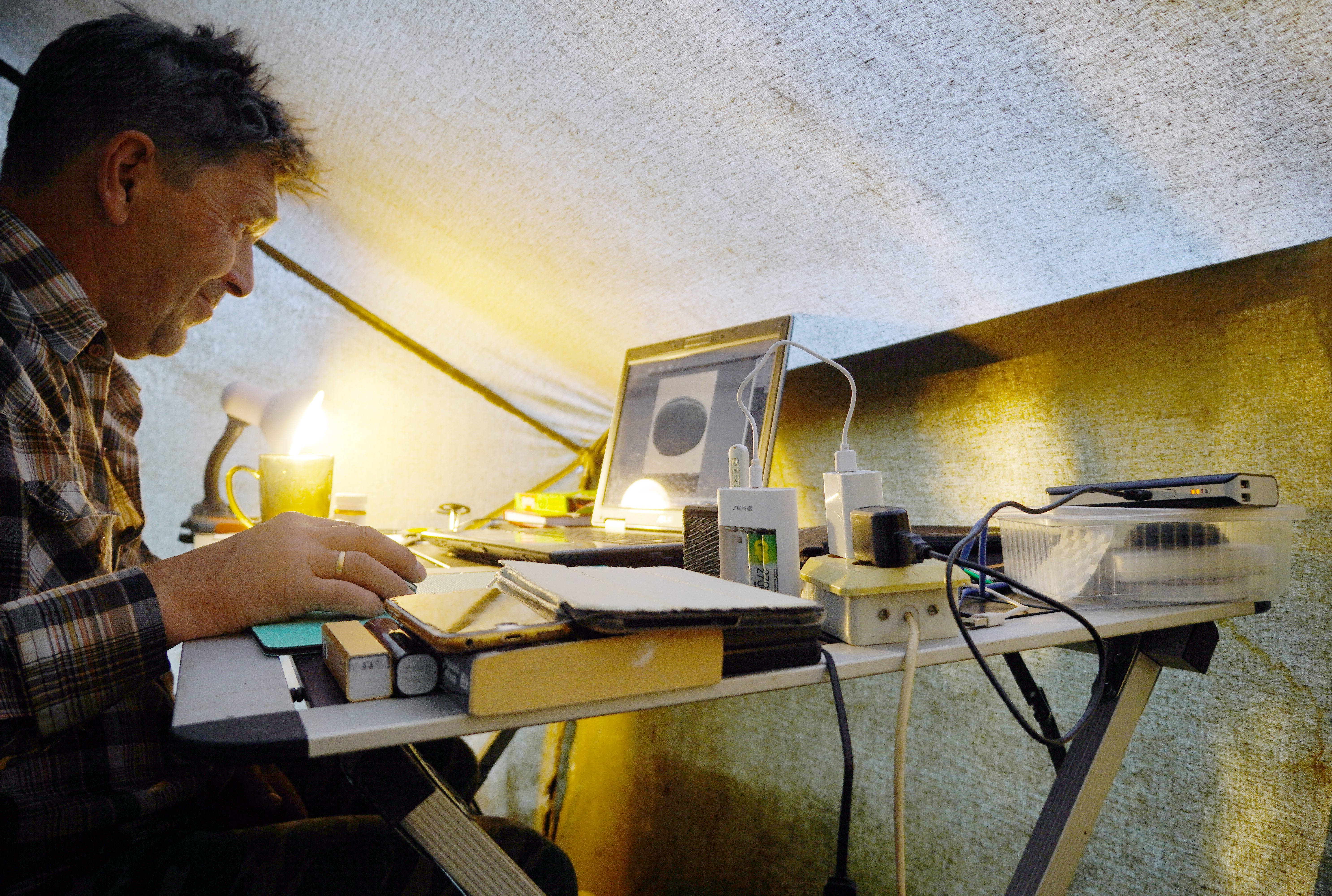 Modern geologist’s field workplace. Photo of D. B. Sobolev.