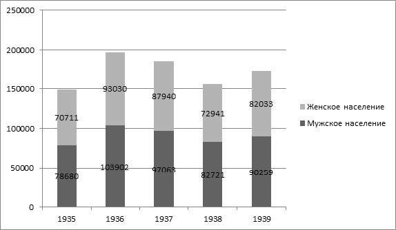 Таким образом, в 1930-е гг. на Южном Урале смертность мужского населения была выше женского. Высокие показатели смертности среди мужского населения обусловлены рядом причин, во-первых, в трудовой сфере мужчины заняты в деятельности с высоким уровнем травматизма и смертности, таких как армия, тяжелая промышленность и т. д., во-вторых, преждевременным старением мужской части населения, в силу занятости на более опасном производстве. Женская смертность ниже показателей мужской, но женский организм особенно подвержен опасности в период беременности и после рождения ребенка. К тому же, занятость на стройках индустриализации и рост травматизма способствовали смертности, в том числе, и среди женщин. Наиболее высокие общие показатели смертности приходятся на 1936 г. среди как мужского населения, так и женского. Гендерная диспропорция прослеживается по результатам обеих Всесоюзных переписей населения 1926 г. и 1939 г.