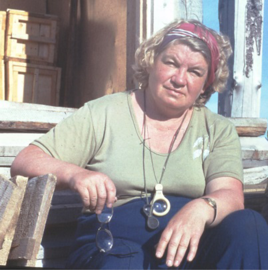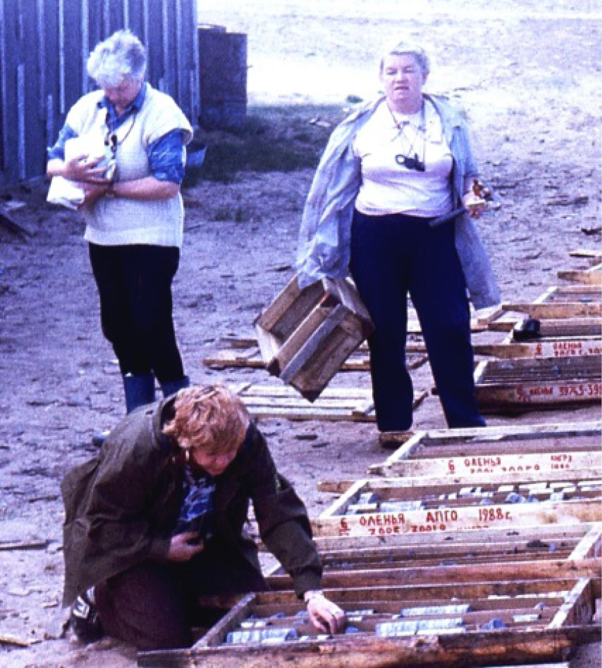 В. Н. Каратаюте-Талимаа в кернохранилище Амдерминской нефтегазоразведочной экспедиции, пос. Амдерма (1987).