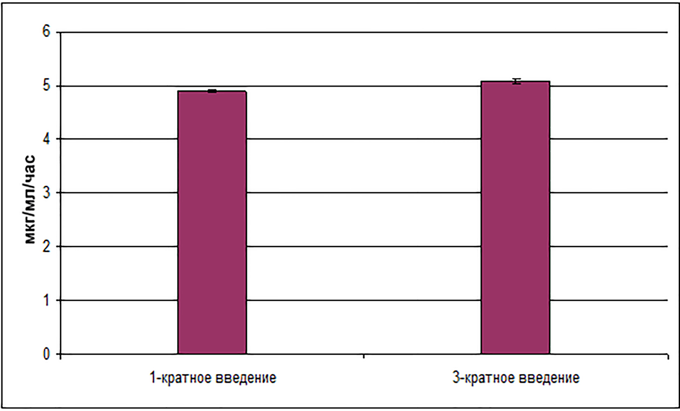 При многократном введении установлено, что площади под фармакокинетической кривой возрастает на 3,89 % (рис. 2).