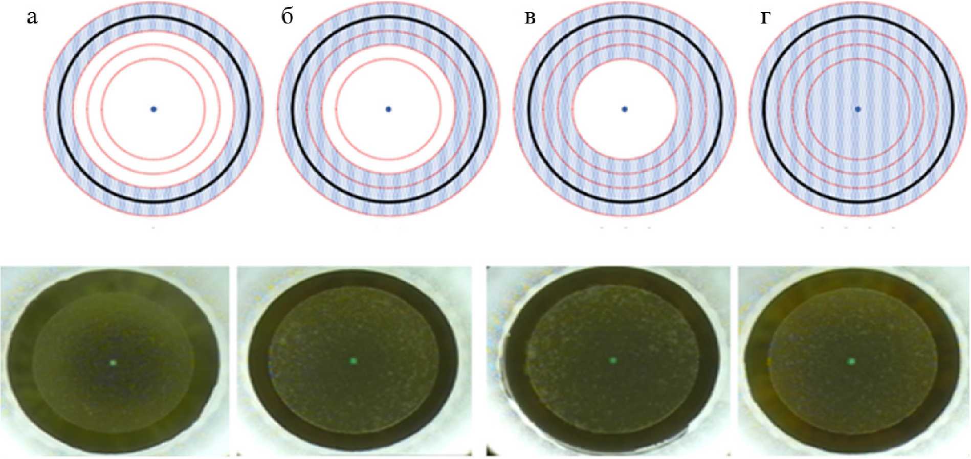 Оценку НПС осуществляли интраоперационно и на основании видео- и фотоснимков, полученных во время операции. Классификация различных видов НПС, разработанная L. Lee и соавт., представлена на рис. 1 в зависимости от расположения от края роговичной лентикулы на этапе формирования задней плоскости роговичной лентикулы: 0,5 мм (a), 0,5–1,0 мм (б), 1–1,5 мм (в), более 1,5 мм (г) от края лентикулы вовнутрь. На передней плоскости роговичной лентикулы НПС классифицировался как центральный (a) или диффузный (б) (рис. 2).
