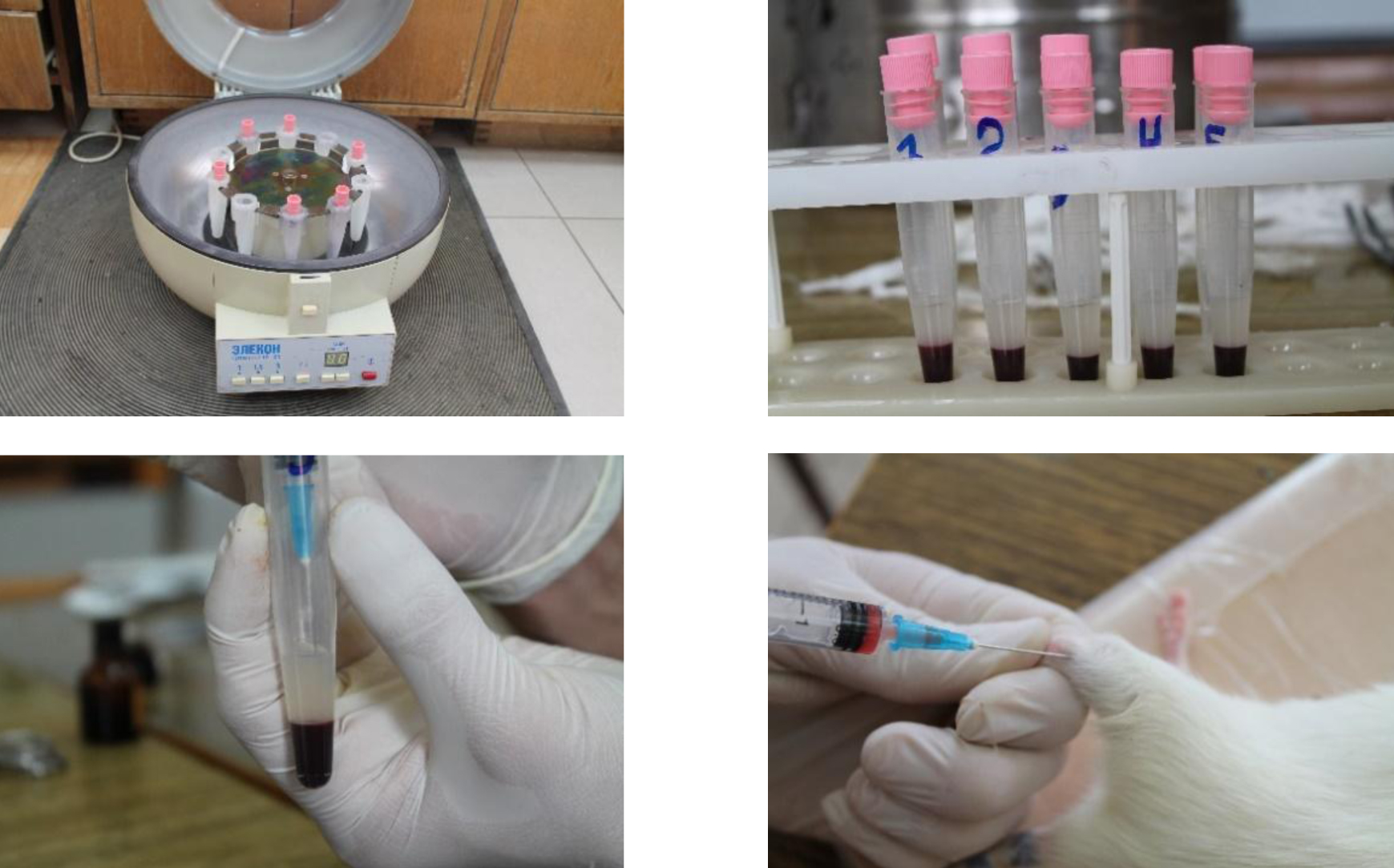 Для получения ОТП забирали 1,2 мл цельной крови из бедренной вены животных в шприц с предварительно набранными 0,4 мл 5%-го раствора цитрата натрия и затем использовали методику двойного центрифугирования (рис. 1).