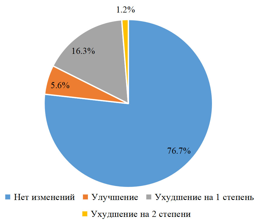 Рис. 3. Изменение степени ожирения в течение наблюдения