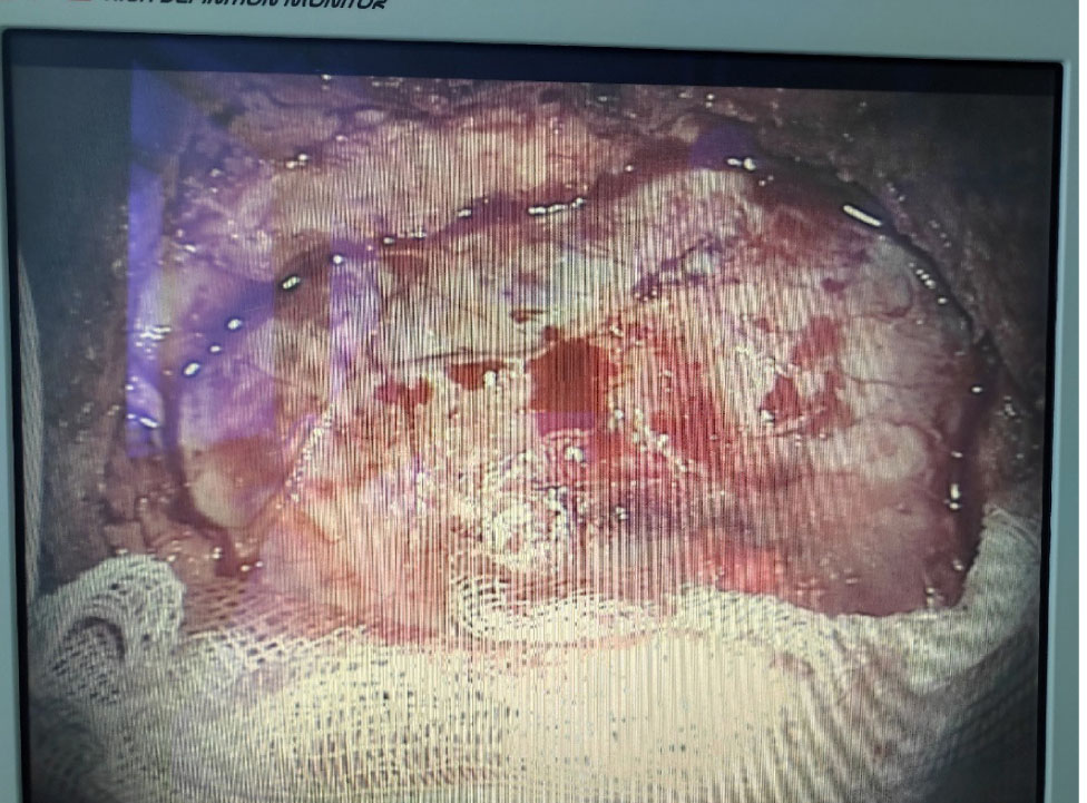 Рис. 2. Фотоизображение ТМО мужчины 40 лет с экрана микроскопа при оперативном вмешательстве с целью удаления мешотчатой аневризмы
