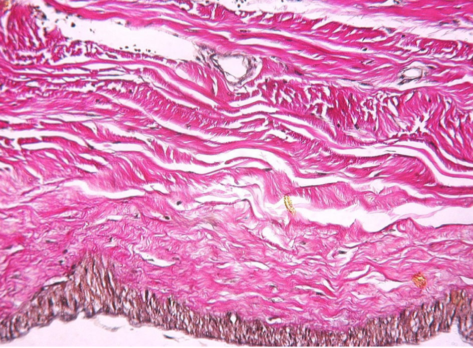 Рис. 3. Фрагмент ТМО мужчины 30 лет. Окраска по Ван Гизону. Увеличение ×80