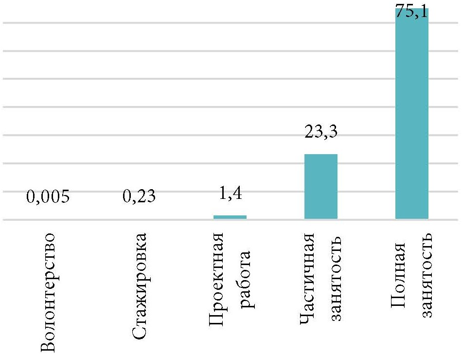 Тип занятости (эталонный | 1. Волонтерство 2. Полная занятость 3. Проектная работа | 4. Стажировка 5. Частичная занятость | [66–70] |