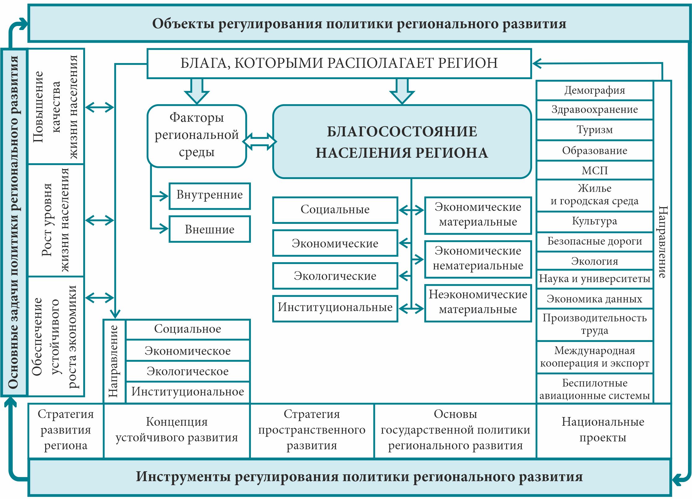 - Проблема недостаточной комплексности и системности принимаемых управленческих решений особенно заметна в области обеспечения сбалансированного и устойчивого развития территорий, что подразумевает исследование и учет множества аспектов экономической, социальной, экологической и институциональной направленности. Иными словами, меры региональной политики должны носить системный характер и учитывать взаимосвязанность и взаимовлияние всех элементов региона. Кроме того, важно принимать во внимание взаимное влияние благ, являющихся факторами региональной среды, и благ, образующих благосостояние населения региона. В противном случае достижение высокого уровня обеспеченности населения экономическими и неэкономическими, материальными и нематериальными благами можно считать недостижимой целью политики регионального развития.