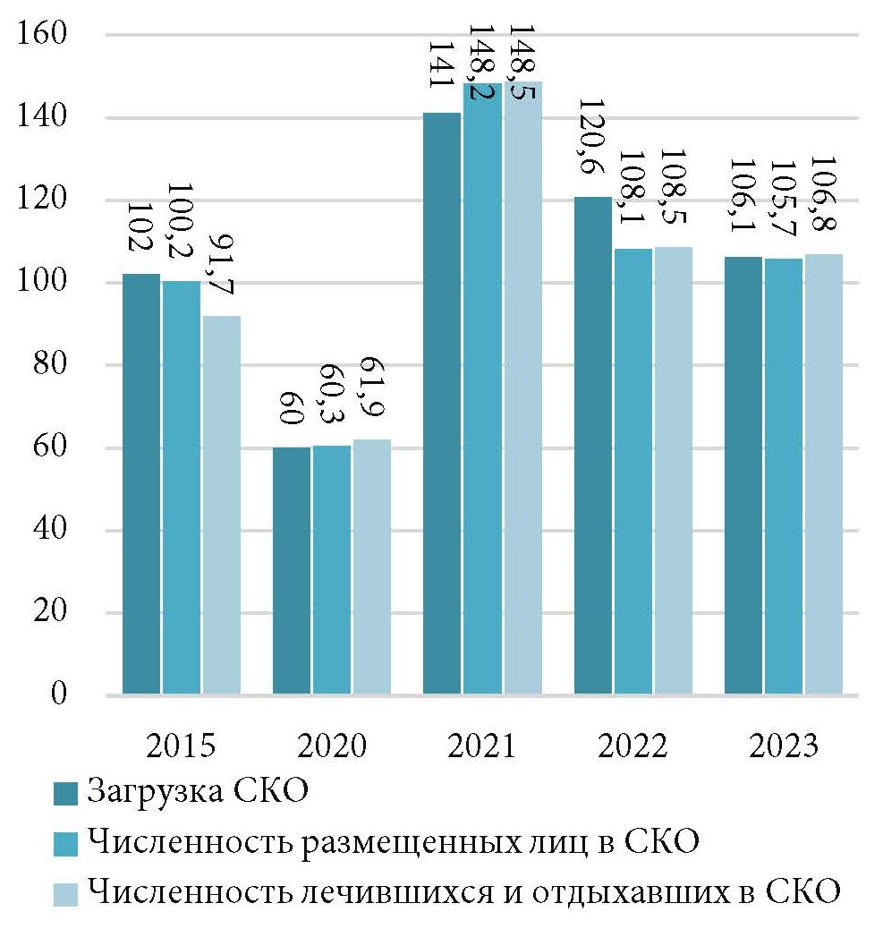 Показатели производственной деятельности СКО растут, ежегодно повышается загрузка, увеличивается численность размещенных лиц, включая тех, кто приобрел путевки на лечение и реабилитацию. Несмотря на развитие разнообразных сопутствующих услуг, предлагаемых оздоровительными центрами, SPA и другими организациями, заменить подход, реализуемый в санаториях, или заместить услуги здравниц практически невозможно, поскольку это требует сочетания различных функций и ресурсов, направленных на достижение цели по лечению, оздоровлению и реабилитации.