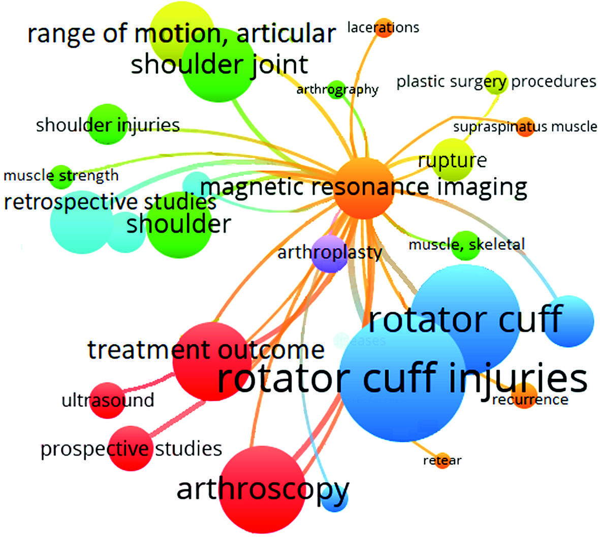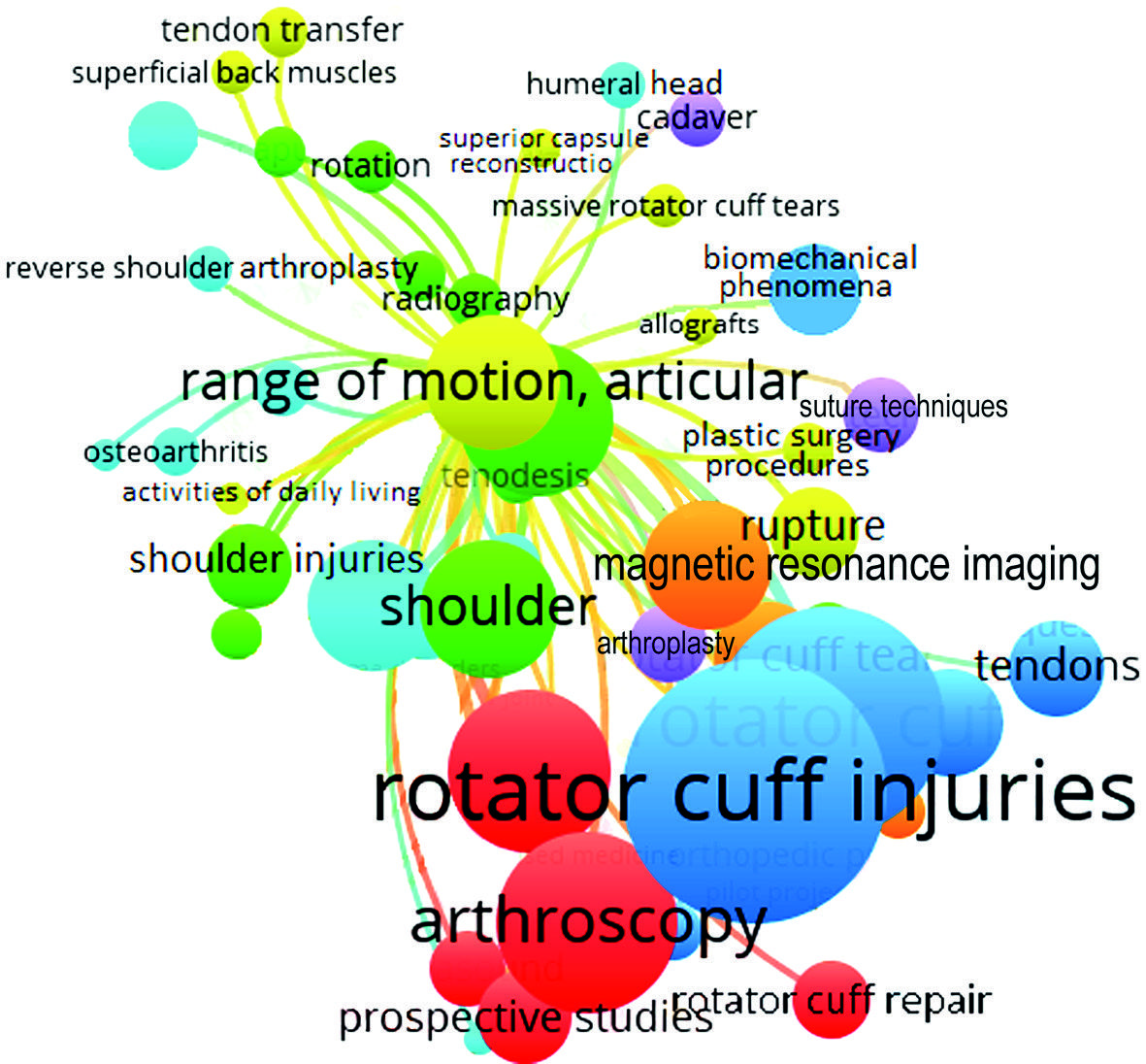 The objective of this study is to perform a cluster analysis and visualization of keywords in international publications on rotator cuff injuries using the VOSviewer software.