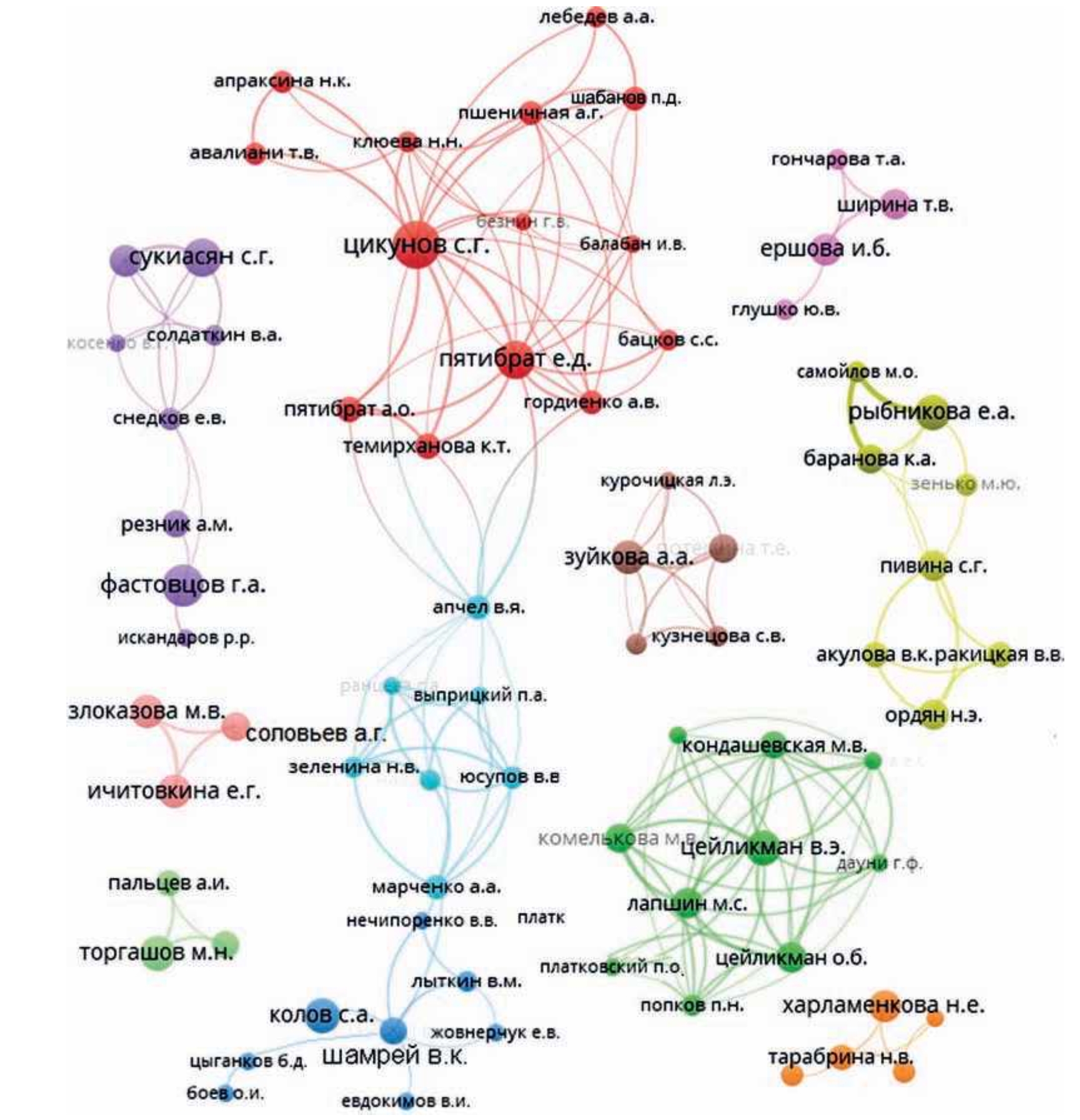 Рис. 18. Научные школы (соавторства) по изучению боевого стресса в России.