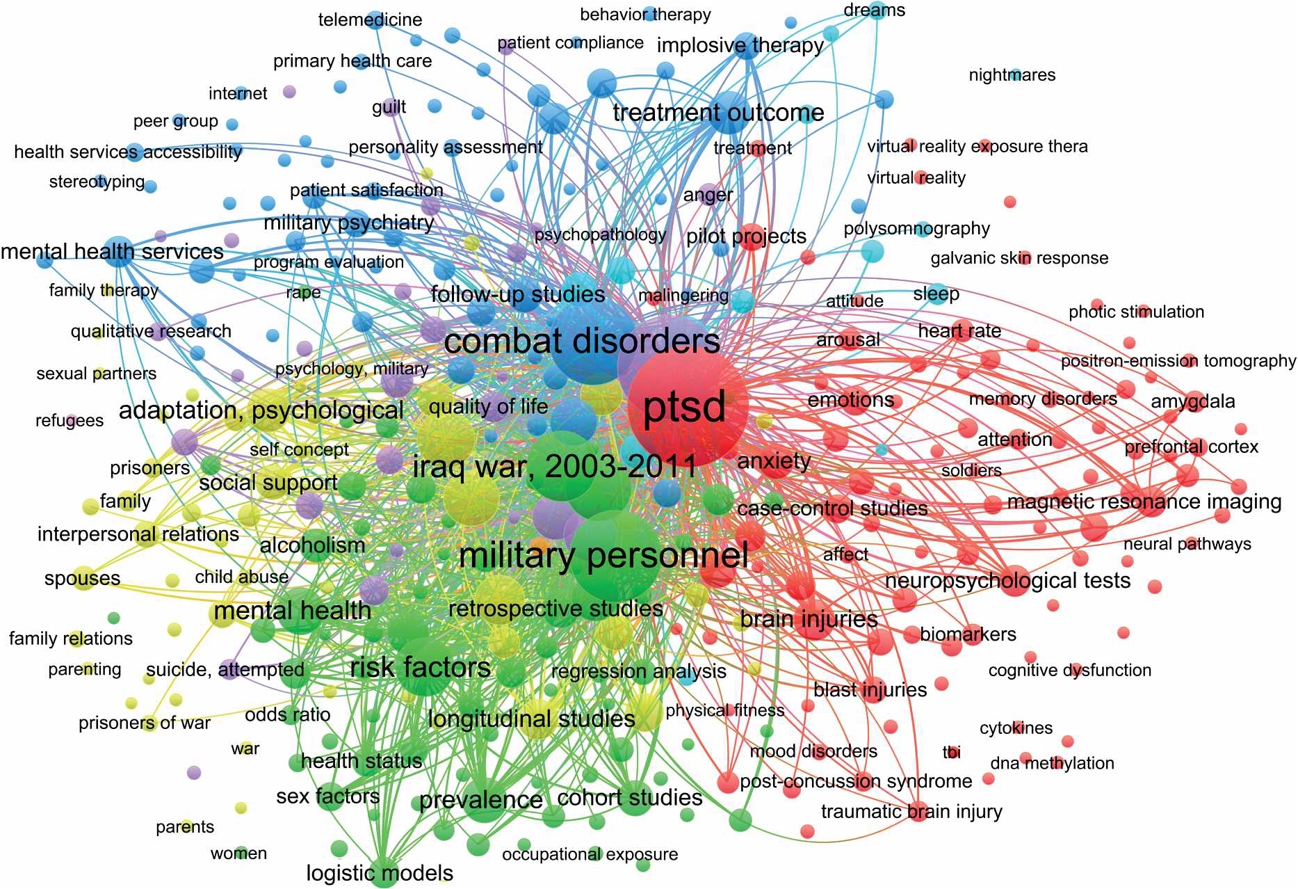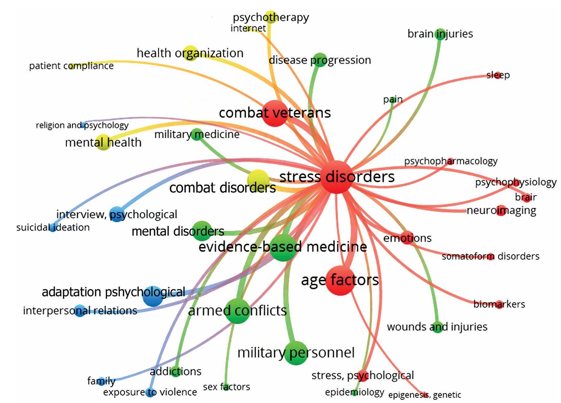 Цель – анализ содержания зарубежных статей по боевому стрессу, опубликованных в 2005–2021 гг., при помощи адаптации результатов программы VOSviewer.